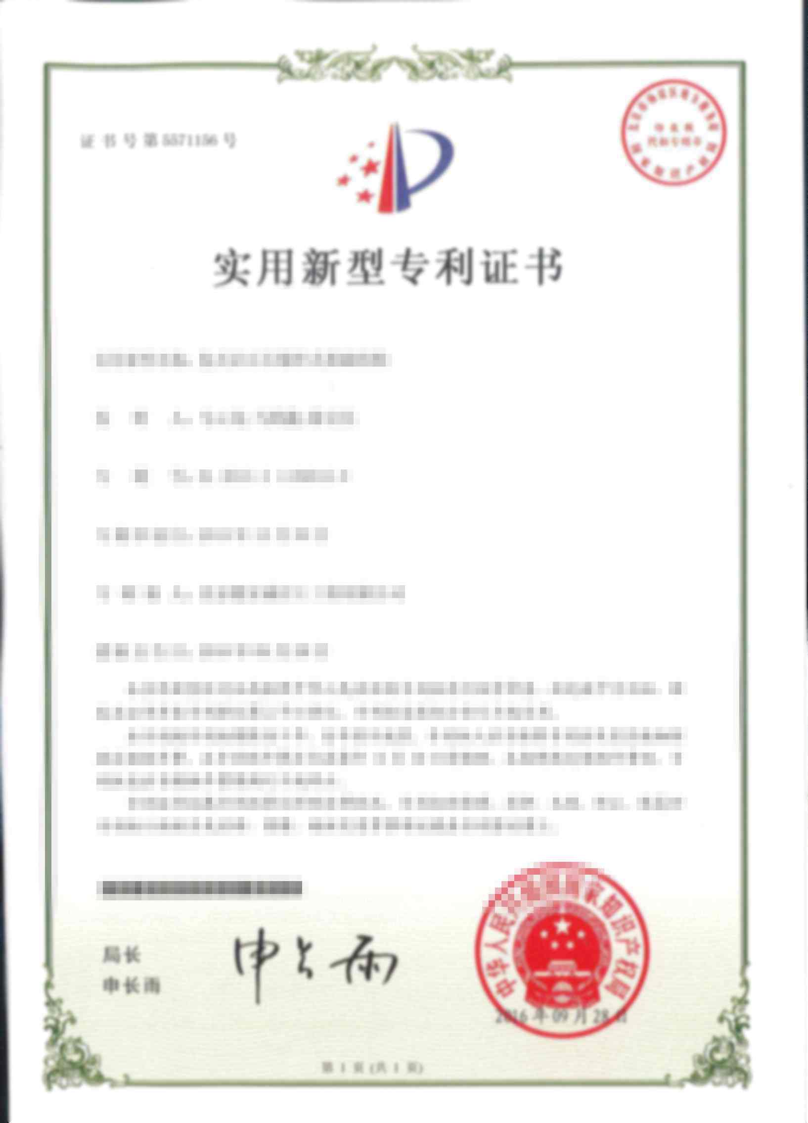 實(shí)用新型專利證書